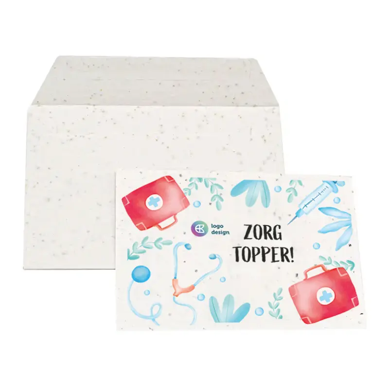 Le papier ensemencé fait partie de nos cadeaux écoresponsables les plus appréciés. C’est une manière originale de remercier vos collaborateurs tout en leur offrant un bouquet de fleurs à faire pousser. La carte en papier ensemencé peut être plantée, et quelques semaines plus tard, de jolies fleurs apparaissent. Vous pouvez bien sûr fournir votre propre design.