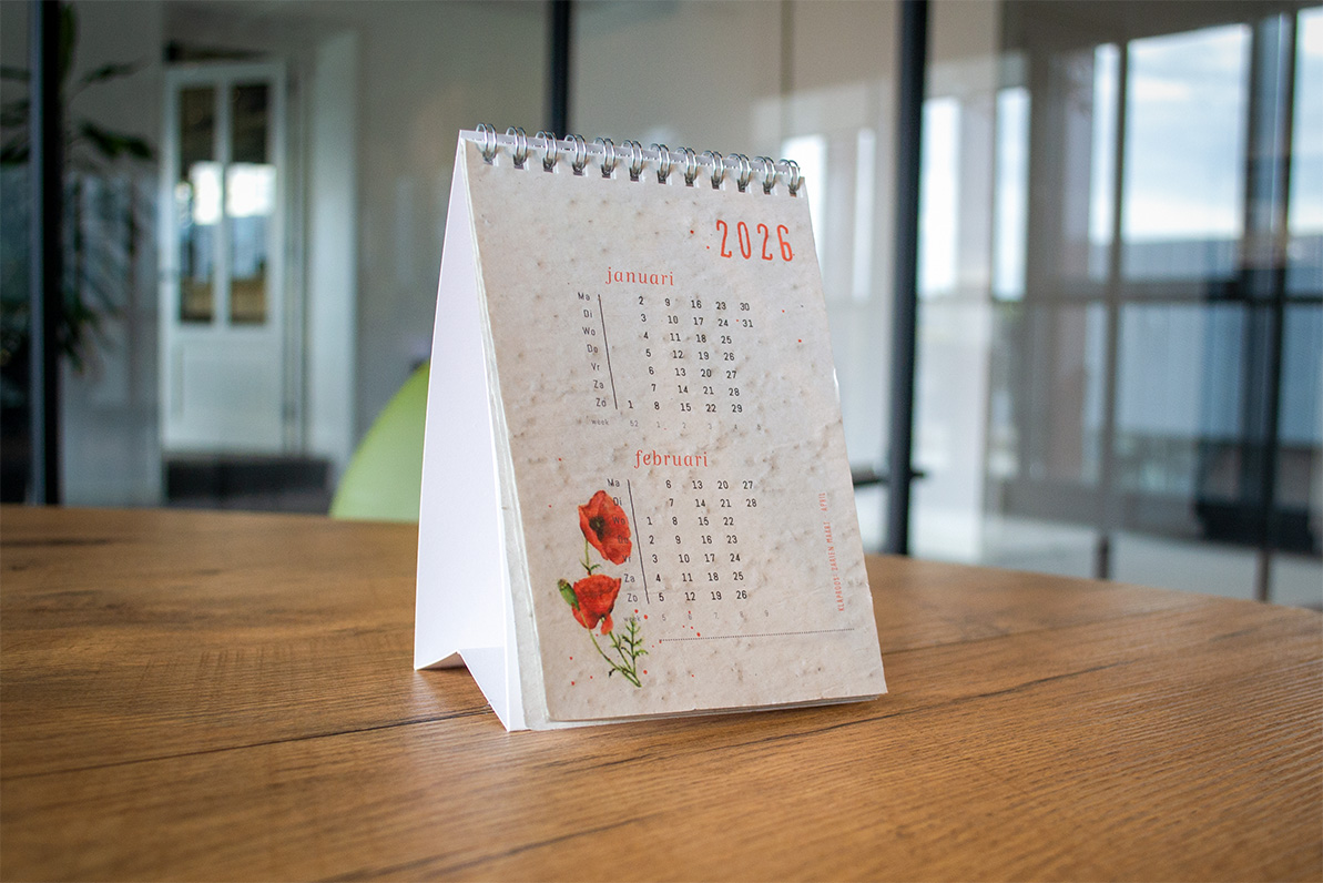 L’année passe souvent plus vite qu’on ne le pense. Il est donc temps de réfléchir à un nouveau calendrier. Vous cherchez quelque chose de différent, d’original à offrir à vos collaborateurs ou relations ? Alors lisez ce blog attentivement. Nous proposons en effet une variante originale dans notre assortiment : le calendrier en papier ensemencé. Autrement dit, un calendrier réutilisable. Il ne finit pas à la poubelle après un an, mais trouve tous les deux mois une place dans le jardin. Résultat : de magnifiques fleurs ou de délicieuses herbes aromatiques.