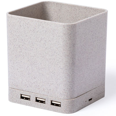 Ce porte-stylos est bien plus qu’un simple rangement pour stylos. Il sert également de support pour smartphone et de chargeur sans fil, tout en offrant 3 ports USB (2.0). Un câble micro USB blanc d’un mètre est également inclus. Ce porte-stylos multifonctionnel fera assurément plaisir à vos contacts.