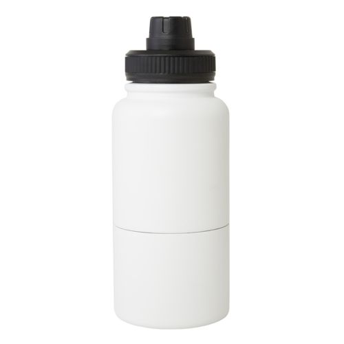 Cette magnifique bouteille est multifonctionnelle : elle dispose également d'un conteneur à double paroi (340 ml). Vous pouvez bien sûr y conserver des boissons, mais aussi des encas par exemple. La partie supérieure de la bouteille est une thermos isolée en cuivre (530 ml), qui garde vos boissons chaudes ou froides pendant plusieurs heures. La bouteille est fabriquée à partir d'acier inoxydable certifié RCS et de plastique recyclé.