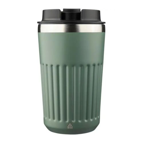 Que vous partiez au travail ou en vacances, ce mug de voyage est un choix idéal. Grâce à sa double paroi isolante, vos boissons restent bien chaudes ou agréablement fraîches. Les rainures extérieures assurent une bonne prise en main. Ce thermos est disponible en 7 couleurs et a une capacité de 400 ml. Une option durable, fabriquée en acier inoxydable recyclé avec un couvercle en PP.