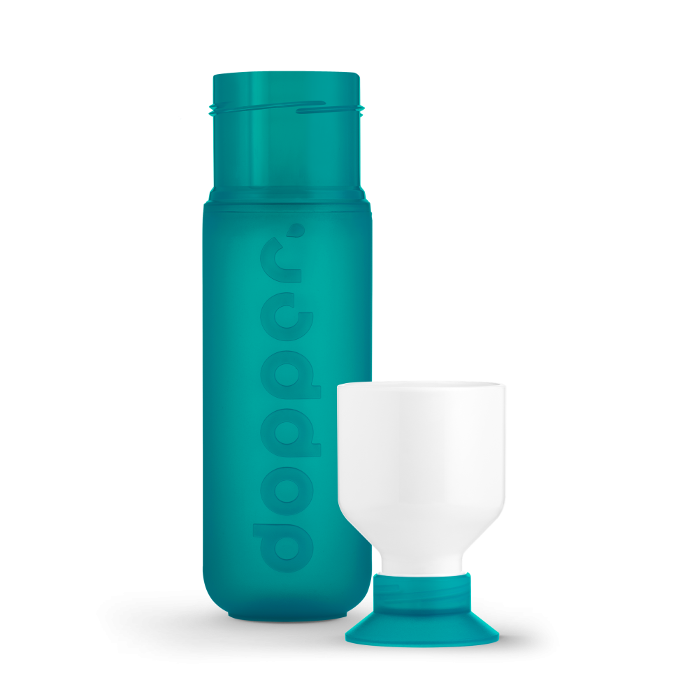 La Dopper est à la fois une bouteille et un gobelet. Toutes les variantes de la bouteille Dopper contiennent ces trois éléments. Cela en fait une bouteille facilement reconnaissable, avec un design unique.