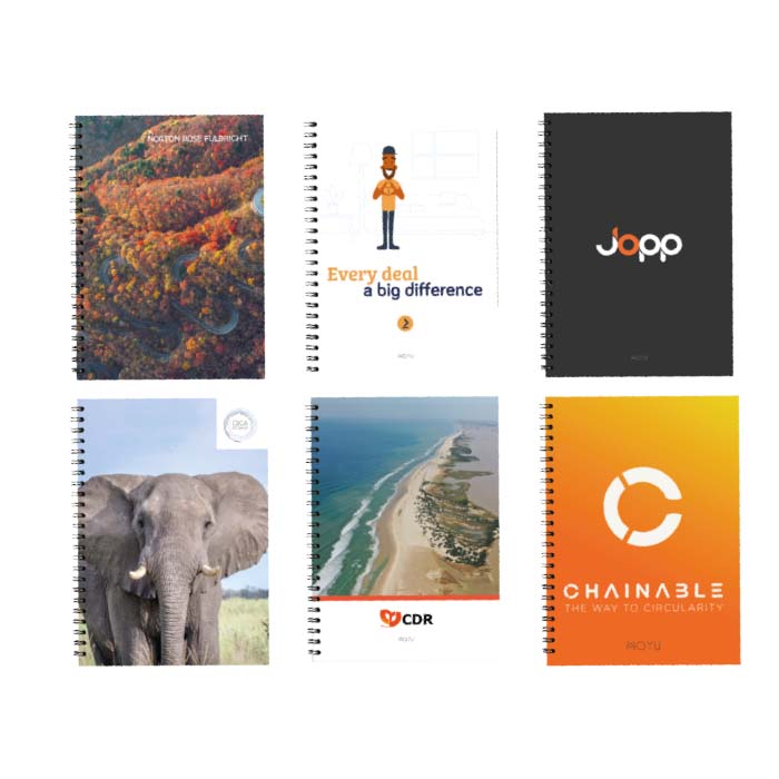 Les carnets uniques de MOYU sont parfaits comme cadeaux durables pour vos collaborateurs, clients ou partenaires. Ils peuvent être entièrement personnalisés avec votre propre design. Offrir un carnet MOYU, c’est raconter une histoire durable, avoir un impact positif et offrir à vos relations un cadeau pratique et élégant.