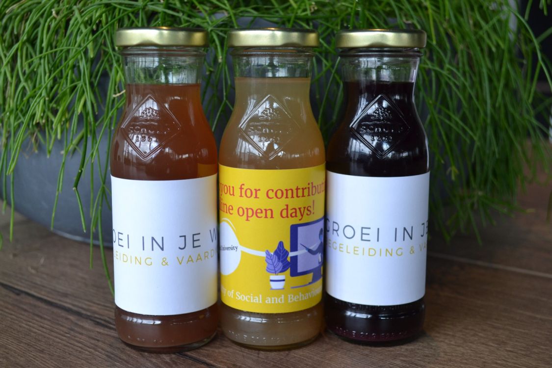 Chaque bouteille peut être personnalisée avec un autocollant ou une étiquette imprimée en quadrichromie. Vous pouvez fournir votre propre design. Le jus est disponible en 8 saveurs différentes. Chaque bouteille contient 200 ml de jus de fruits. Un cadeau auquel on ne pense pas immédiatement, mais qui est assurément original !