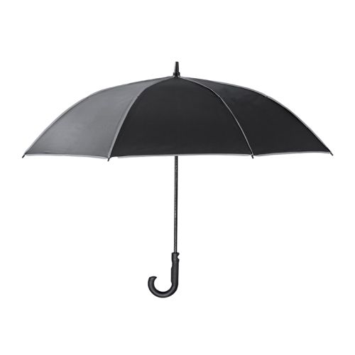 Ce parapluie coupe-vent est fabriqué en pongee RPET solide, issu de bouteilles PET recyclées. Son design noir élégant avec des détails réfléchissants vous permet de ne pas passer inaperçu – même sous une pluie battante. Il s’ouvre automatiquement, mesure 120 cm de diamètre (27") et possède des baleines en fibre de verre ainsi qu’une poignée en PP. Facile à transporter grâce à sa housse fournie avec sangle réglable et fermeture velcro.
